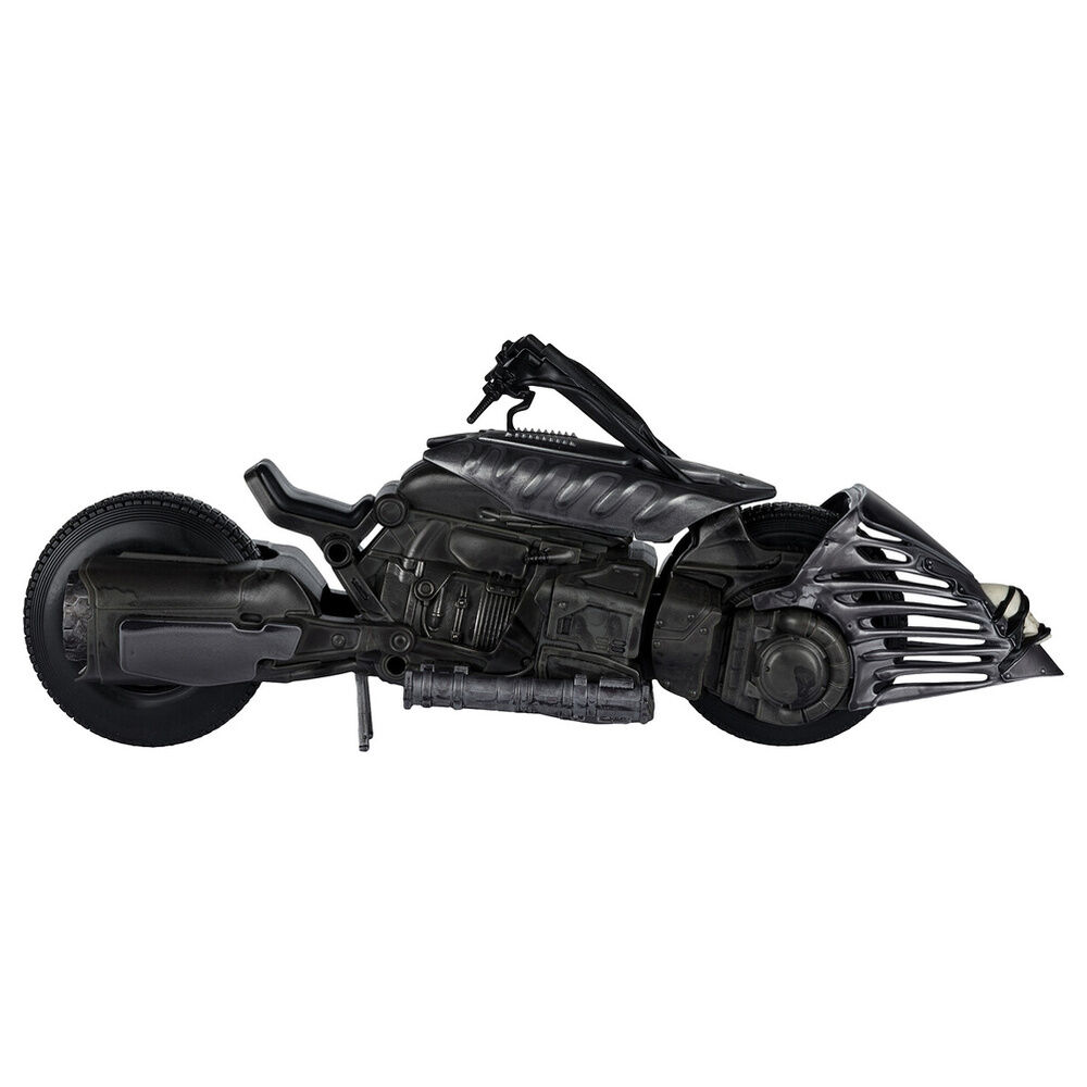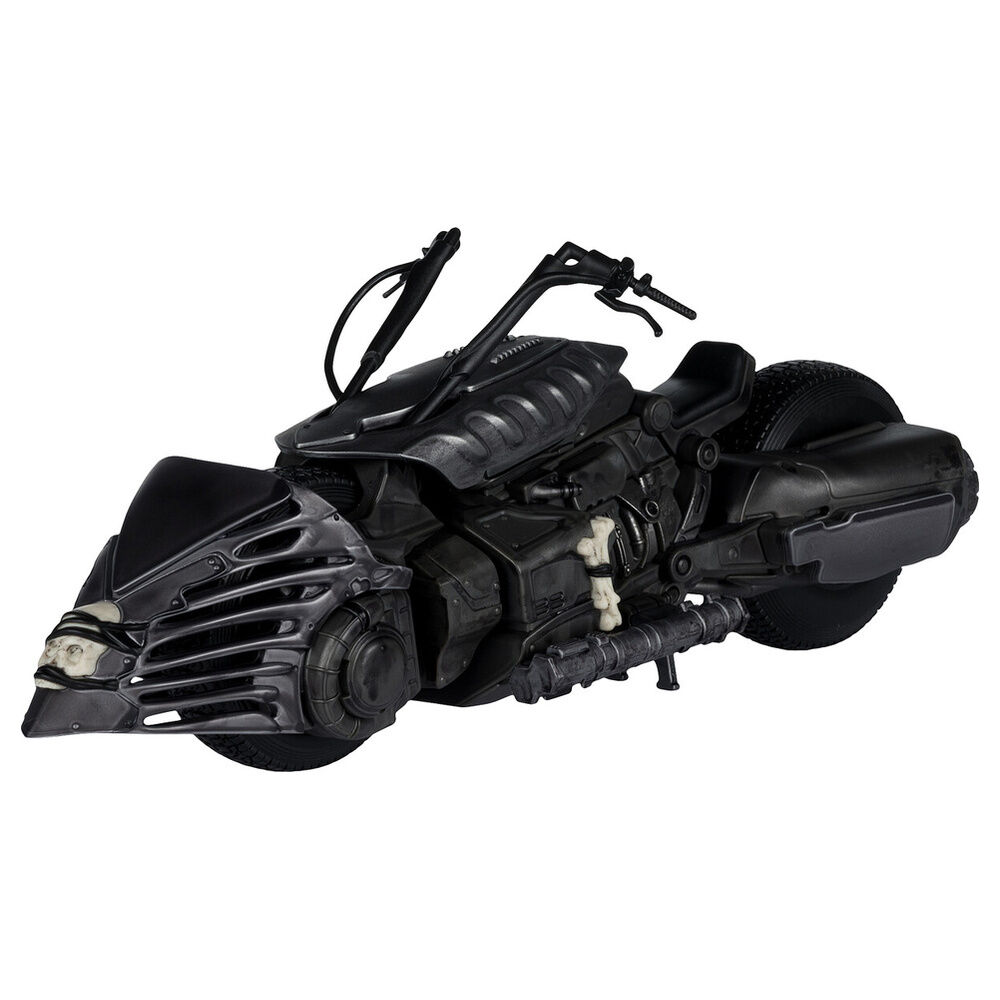 Con 33 cm de largo, este vehículo coleccionable destaca por un diseño agresivo, volúmenes marcados y una silueta reconocible al instante. El modelado reproduce muy bien su estética oscura y mecánica, con un alto nivel de detalle en el frontal, el cuerpo, las texturas laterales y las líneas del asiento. En este tipo de piezas suele emplearse PVC y plástico técnico rígido para mantener definición, resistencia y estabilidad en exposición, algo especialmente importante en un vehículo de este tamaño pensado para lucirse de verdad en vitrina, estantería o zona temática de cine y cómic.