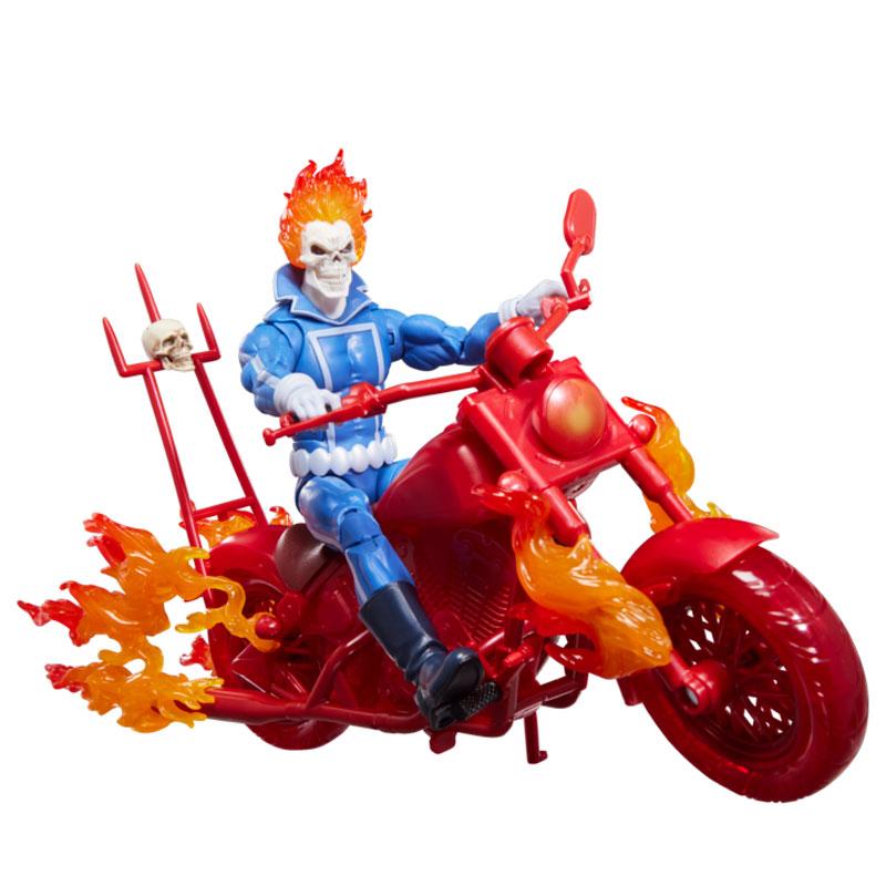 Esta figura Ghost Rider Marvel Legends presenta a Johnny Blaze con su icónica calavera en llamas, chaqueta azul y actitud desafiante, recreado con un nivel de detalle que refleja fielmente el estilo del cómic. Su esculpido resalta la musculatura, la textura del traje y la expresión feroz del personaje, mientras que los efectos de fuego translúcido aportan un impacto visual espectacular.