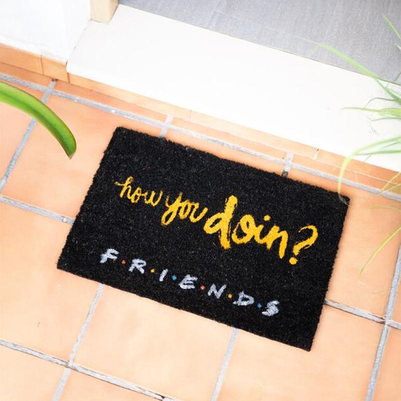 Cada detalle de este felpudo Friends está pensado para convertir la entrada de casa en un guiño reconocible, divertido y con mucho estilo. El felpudo How You Doin Friends es una opción ideal para quienes buscan decoración práctica con personalidad, ya que combina una imagen icónica de la serie con un formato funcional para el uso diario. Con unas medidas de 60 x 40 cm, ofrece un tamaño muy cómodo para colocar en la puerta principal, en la entrada del piso o en zonas de paso, ayudando a mantener el acceso más limpio mientras aporta un toque original desde el primer vistazo. Su base de PVC antideslizante favorece una mejor sujeción sobre el suelo, algo especialmente útil para ganar estabilidad en el día a día, y sus materiales de alta calidad están pensados para ofrecer una presencia resistente y duradera. Este felpudo original Friends encaja muy bien en hogares con decoración inspirada en series y cine, y también resulta una elección acertada como regalo para quienes disfrutan del merchandising con utilidad real. Su diseño en negro con el mítico “How You Doin” y el logotipo de la serie consigue que este felpudo de entrada Friends no sea solo un complemento decorativo, sino una pieza con encanto propio, perfecta para dar la bienvenida con un estilo reconocible, cuidado y lleno de carácter.