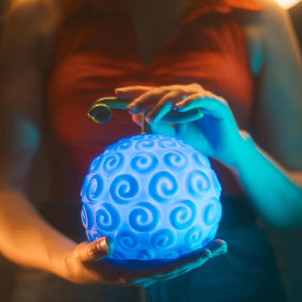Ilumina tu espacio con la poderosa esencia de la fruta Gum Gum gracias a esta original lámpara inspirada en la serie One Piece de Netflix. Fabricada en resistente PVC, esta pieza coleccionable añade estilo y energía creativa a tu escritorio o área de trabajo con dos modos de iluminación distintos: luz azul y luz blanca, controlables fácilmente desde un único botón situado en la base. La lámpara puede alimentarse con 3 pilas AAA de 1,5V (no incluidas) o mediante un cable USB tipo C (incluido) con entrada 5V DC 1A, brindándote flexibilidad y comodidad de uso. Con dimensiones compactas de 14 x 16,5 x 14 cm, este accesorio combina perfectamente la estética anime con la utilidad práctica que necesitas diariamente, proporcionando una ambientación visual que impulsa tu imaginación y creatividad, ideal para profesionales, coleccionistas o seguidores de One Piece.