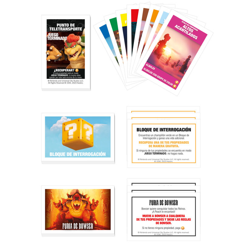 Luces, tablero y aventura en cada tirada con Monopoly Super Mario Bros La Película, versión en español que convierte el salón en el Reino Champiñón con un arte vibrante, monedas doradas en lugar de billetes y un recorrido por lugares icónicos donde comprar, vender e intercambiar propiedades se vuelve pura estrategia; cada partida mantiene el pulso con la presencia de Bowser, capaz de cambiar el rumbo con robos de monedas y envíos a la cárcel, mientras las Tuberías de Teletransporte abren atajos inesperados, los Bloques de Moneda dan giros de suerte y las Plantas Piraña ponen a prueba a pequeños y mayores desde los 8 años, creando un plan perfecto para tardes familiares, reuniones con amigos o un regalo que une nostalgia y tendencia; esta edición inspirada en la gran pantalla brilla por su acabado de calidad.