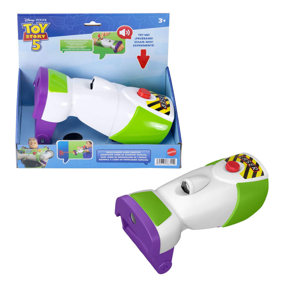 El guantelete láser Buzz Lightyear Toy Story 5 parece arrancado de una misión del Comando Estelar. Blanco, verde y morado brillan con una presencia inmediata, reconocible incluso antes de activar sus luces y sonidos.
