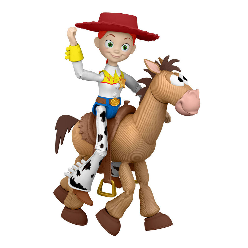 Cada figura está fabricada en plástico resistente tipo PVC, con acabados pintados que reproducen el traje de Jessie, la silla de montar de Perdigón y los rasgos expresivos de ambos personajes. La escala aproximada de 17,78 cm permite que las proporciones encajen entre sí, algo importante tanto para recrear escenas como para mantener una exposición coherente junto a otras figuras articuladas Toy Story 5.