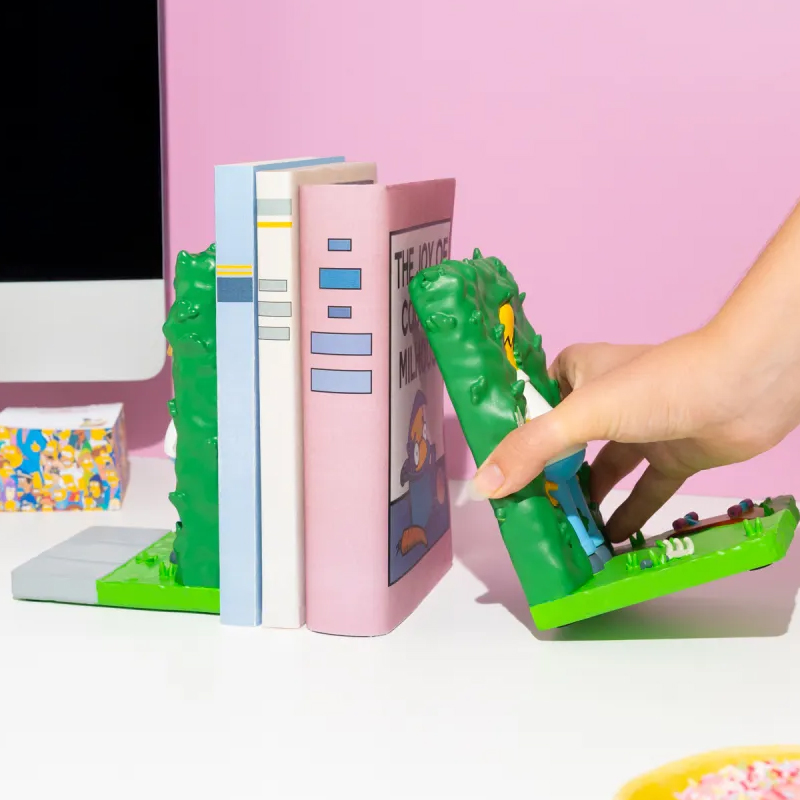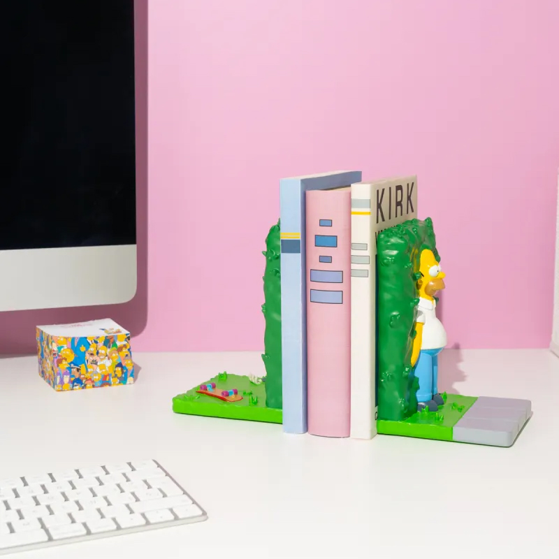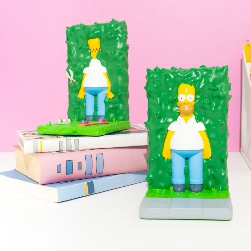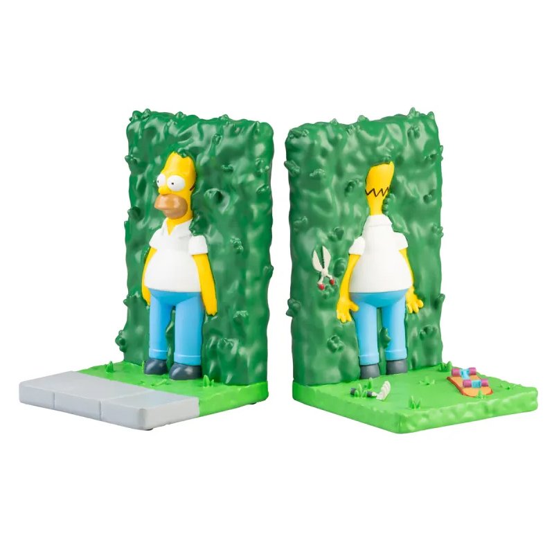La escena más reconocible de la animación televisiva se convierte en un elemento decorativo con carácter propio gracias a este sujetalibros The Simpsons Homer Arbusto, una pieza que aporta humor, orden y diseño a cualquier estantería. Fabricado en resina de alta calidad, modelado en relieve y pintado a mano con gran fidelidad al personaje, este sujetalibros The Simpsons destaca por su acabado detallado y su presencia visual, convirtiendo una simple colección de libros en un espacio lleno de personalidad. Su formato de dos piezas permite colocarlo a ambos lados de los libros para mantenerlos firmes y bien organizados, al mismo tiempo que añade un toque decorativo inspirado en una de las series más influyentes de la historia del cine y la televisión. Con unas medidas aproximadas de 11,2 x 16,9 x 11 cm, encaja perfectamente en estanterías, escritorios o vitrinas, funcionando tanto como organizador práctico como como decoración The Simpsons para el hogar o la oficina. Este sujetalibros decorativo combina funcionalidad, durabilidad y un diseño icónico, pensado para quienes valoran los detalles, la calidad artesanal y los objetos con identidad propia que aportan valor real al espacio.
