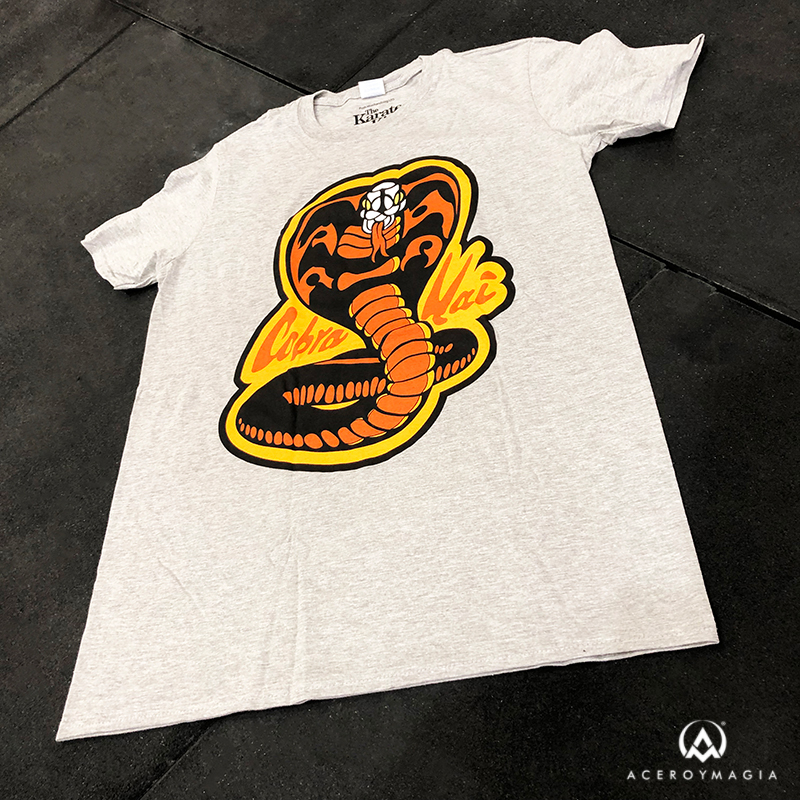 Camiseta oficial de Cobra Kai, basada en la saga de Karate Kid. Todo un artículo de culto para los amantes del cine de los años 80. Camiseta de alta calidad realizada en algodón 100%. Siempre puedes aprender Karate un Dojo de Cobra Kai. Producto oficial Karate Kid Dojo Cobra Kai.
