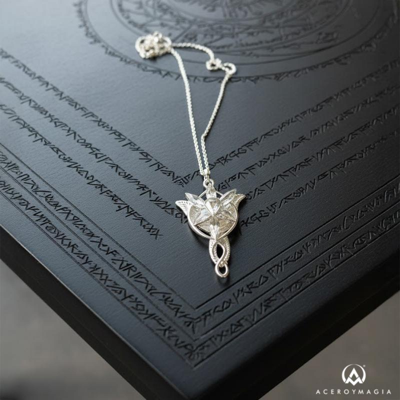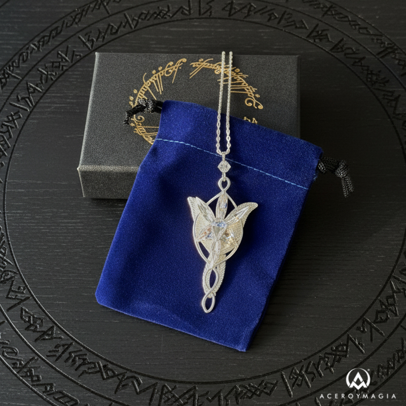 ¡Sé la envidia de todos con el deslumbrante colgante élfico de Arwen "Estrella del Atardecer"! Este collar es una réplica oficial de la trilogía de películas "El Señor de los Anillos" y es una pieza de joyería realmente especial. El colgante mide aproximadamente 6,30 cm y viene con una cadena plateada de 50 cm de longitud. Está hecho de bronce plateado y está incrustado con cristales de Strass que brillan como estrellas en el cielo. ¡Es el accesorio perfecto para cualquier ocasión especial! Viene en una cajita de cartón negra con el logotipo de "El Señor de los Anillos", ¡así que puedes guardarlo con seguridad cuando no lo estés usando! Este colgante élfico es un producto oficial de Noble Collection, ¡así que puedes estar seguro de que estás obteniendo la mejor calidad. ¡Añade este collar espectacular a tu colección hoy mismo!