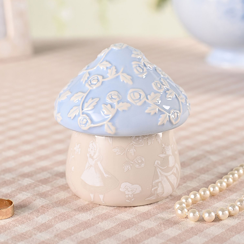 Magia delicada para tus tesoros diarios: la Disney Alice in Wonderland Mushroom Trinket Box convierte la estantería en un rincón de cuento con su forma de seta, relieves florales en azul cielo y base beige que rinde homenaje a la escena más simbólica de la historia. Fabricada en cerámica con un acabado brillante y táctil, ofrece un espacio seguro para anillos, pendientes o recuerdos pequeños, y sus medidas compactas 11 × 10 × 10 cm permiten integrarla en mesillas, tocadores o escritorios sin ocupar de más. Es un producto con licencia oficial, pensado para coleccionistas que buscan merchandising Disney oficial con diseño contemporáneo; combina a la perfección con el resto de la colección (posavasos, portafotos, velas y más) para crear una decoración Alice in Wonderland coherente y encantadora. Si quieres un caja joyero seta que aporte valor real—durabilidad, estética y significado narrativo—esta pieza es un acierto para regalar o para elevar tu propio rincón de fantasía.