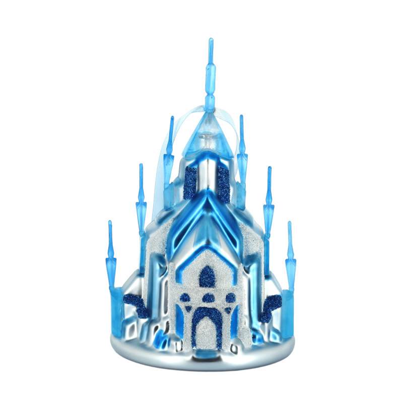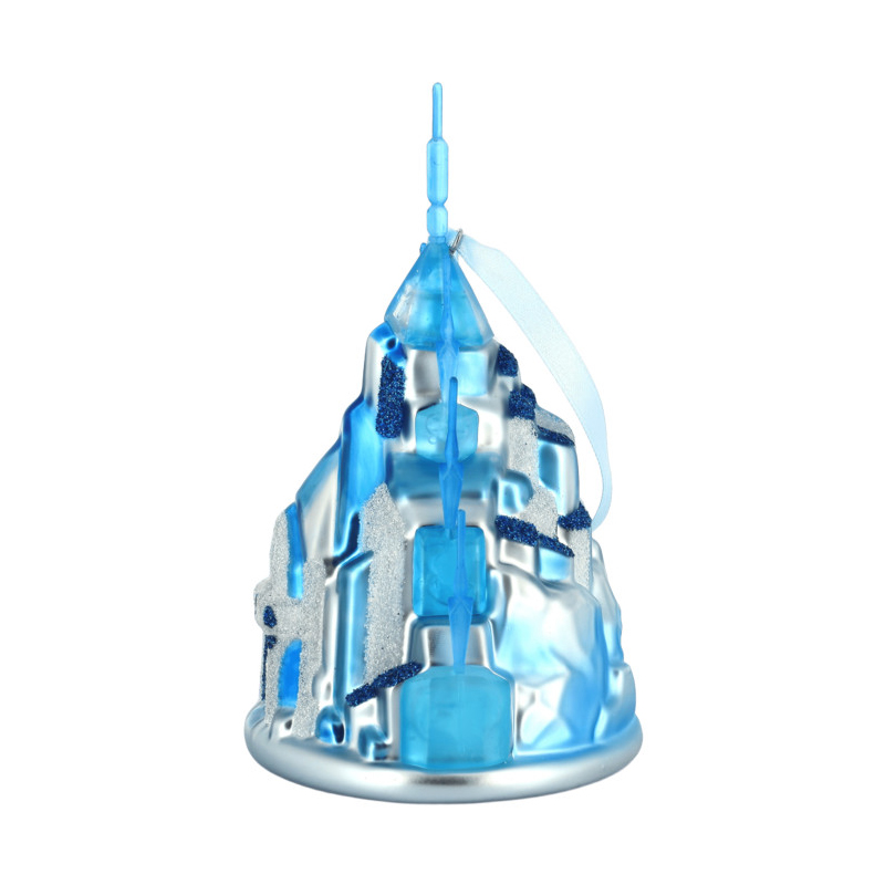 Su diseño reproduce una fortaleza cristalina con torres estilizadas, acabado en azul y plata y un efecto escarchado que capta la luz con un reflejo limpio y elegante. Es una opción muy buscada por quienes quieren comprar un adorno Frozen original con presencia visual real, pensado tanto para árbol como para vitrina o colección temática. El formato colgante con cinta facilita la exposición y permite integrarlo en una decoración navideña cuidada, sin recargar el conjunto.