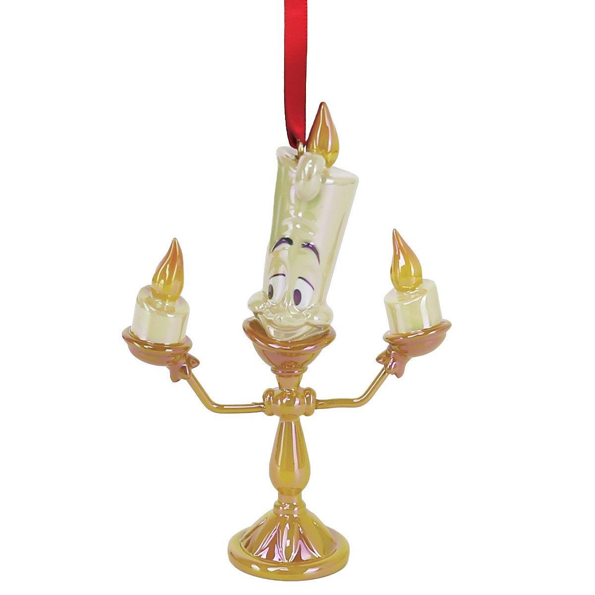 La elegancia de un clásico Disney se convierte en brillo puro con este ornamento Lumière electroplated de La Bella y la Bestia, una suspensión decorativa que aporta un toque cálido y sofisticado tanto al árbol como a cualquier rincón de colección. Fabricado en PVC con una finitura iridiscente dorada, ofrece un efecto metálico brillante que refleja la luz con un acabado “premium”, capturando el carácter alegre y refinado de Lumière con un diseño moderno y lleno de detalle. Viene listo para colgar, ideal para decorar en Navidad o para lucirlo todo el año en vitrina, aportando personalidad sin recargar y elevando la decoración con un guiño nostálgico muy cuidado. Es una pieza pensada para coleccionistas y amantes del universo Disney que buscan un objeto decorativo con presencia y acabado especial, y está destinado exclusivamente a adultos; no es un juguete infantil. Medidas: 10 cm de alto, 7,5 cm de ancho y 7,5 cm de profundidad.