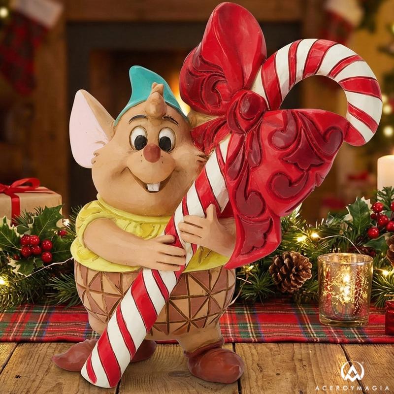 La alegría más sencilla de la Navidad se representa en una figura pequeña que transmite optimismo, cercanía y el encanto clásico de Disney con gran naturalidad. Esta figura Gus Navidad muestra al entrañable ratoncito de Cenicienta cargando un bastón de caramelo casi tan grande como él, una escena llena de simpatía que evoca esfuerzo, ilusión y espíritu festivo. Su expresión sonriente y su postura decidida conectan con la magia de los pequeños detalles, mientras el diseño artesanal de Jim Shore aporta un acabado folk art reconocible, con relieves suaves y pintura a mano que realzan su carácter único. Esta figura Disney Jim Shore destaca por su calidad y por su capacidad de aportar calidez a cualquier espacio, convirtiéndose en un elemento decorativo ideal para composiciones navideñas delicadas y con personalidad. Gracias a sus dimensiones compactas de 8,5 cm de alto, 8 cm de largo y 4,5 cm de ancho, encaja perfectamente en estanterías, vitrinas o rincones especiales donde los objetos pequeños marcan la diferencia. Más allá de su tamaño, esta figura Gus coleccionable transmite ternura y tradición, siendo una excelente opción como regalo Disney Navidad para quienes valoran la artesanía, el diseño cuidado y las piezas con alma dentro de una cuidada colección Disney Navidad.