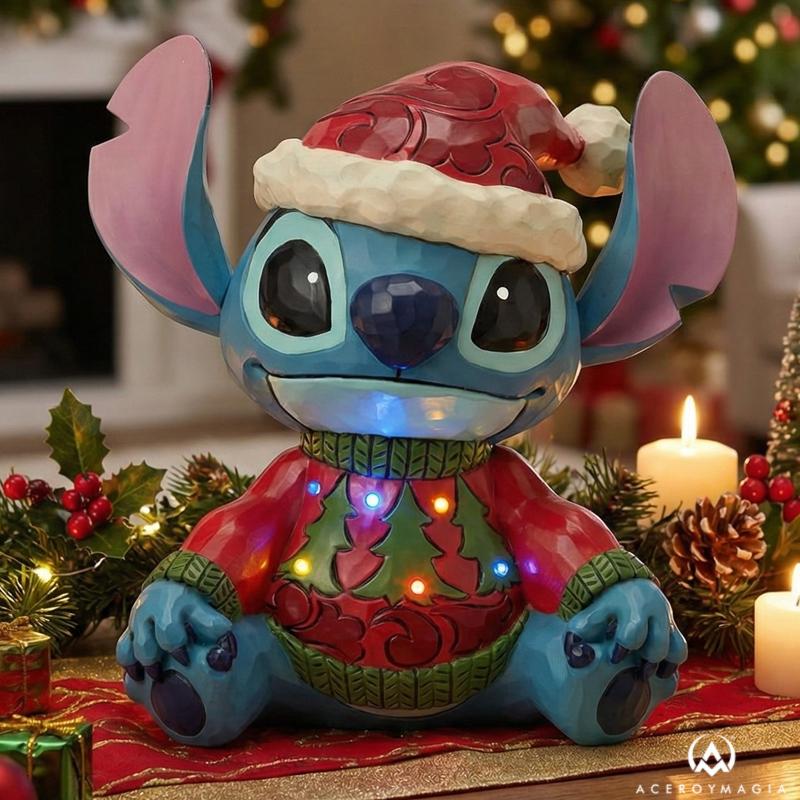 El espíritu más travieso y luminoso de la Navidad se expresa en una figura que no pasa desapercibida y que conecta de inmediato con la emoción de las fiestas. Esta figura Stitch Navidad combina humor, ternura y un diseño artesanal excepcional, mostrando a Stitch con un simpático jersey navideño iluminado por luces LED que aportan un efecto visual cálido y sorprendente. Con su gorro de Santa y su inconfundible expresión pícara, este diseño de Jim Shore fusiona el estilo folk art con la magia Disney, creando una pieza decorativa original que aporta personalidad a cualquier ambiente navideño. Cada detalle está cuidadosamente trabajado y pintado a mano, lo que refuerza su valor como figura Disney Jim Shore y la convierte en un objeto de colección pensado para durar en el tiempo. Sus dimensiones de 17,5 cm de alto, 16 cm de largo y 11 cm de ancho le otorgan una presencia destacada, ideal para vitrinas, aparadores o como punto focal dentro de la decoración navideña del hogar. Más allá de su iluminación LED, esta figura Stitch coleccionable transmite alegría, diversión y un toque diferente a las tradiciones clásicas, siendo una opción perfecta como regalo Disney Navidad para quienes buscan originalidad, calidad y una pieza con carácter dentro de una cuidada colección Disney Navidad.