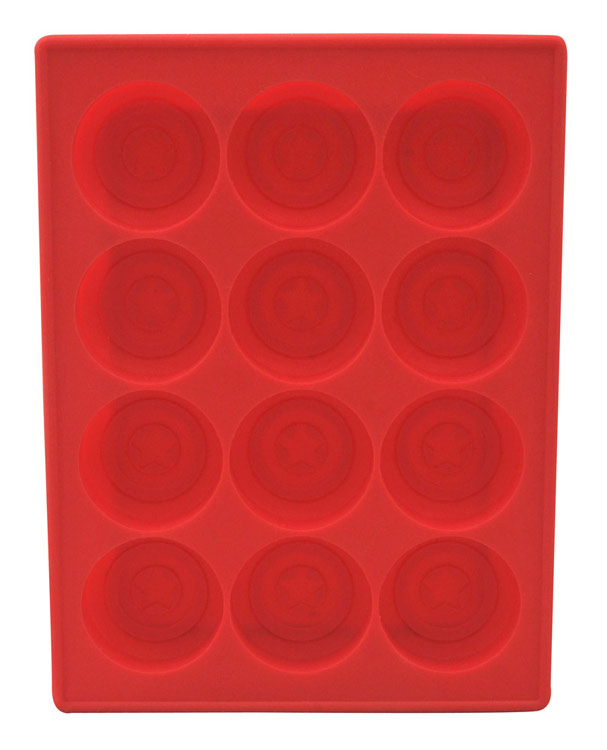 Molde de Silicona del escudo del Capitán América. El molde tiene unas dimensiones aproximadas de 15 x 11 x 3 cm. Esta silicona está tratada para poder aguantar altas y bajas temperaturas lo que la hace apta para servirte tanto como cubitera para realizar tus hielos más fantásticos, gelatina y chocolate. Ideal para decorar tu Cupcake favorito con un toque cinematográfico con el espectacular escudo del Capitán América. Producto oficial Marvel Silicone Tray Captain America Shield de Diamond Select.