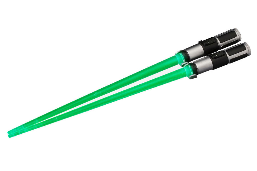 Disfrutar de comer Sushi o defender la Galaxia, eso depende de ti. Con los palillos chinos con Luz del Maestro Yoda de Star Wars podrás disfrutar de tu comida preferida mientras tienes todo el poder de la fuerza entre tus dedos. La caja contiene un pack de palillos chinos de Darth Vader con una longitud aproximada de 25 cm. Producto Oficial Star Wars Light Up Chopsticks Yoda Lightsaber.