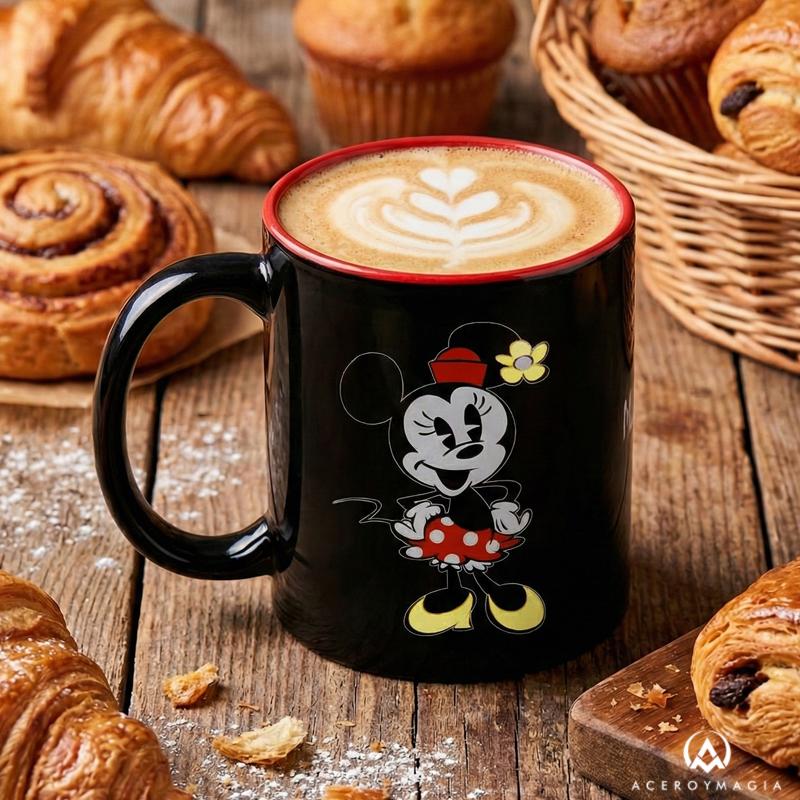 La elegancia y el encanto del cine clásico se reflejan en esta taza Minnie Mouse, un diseño cuidado que aporta estilo y calidez a cada momento de descanso. Su acabado en cerámica negra con interior rojo crea un contraste sofisticado que realza la imagen icónica de Minnie, transmitiendo dulzura y personalidad sin perder un toque moderno. Esta taza Minnie Mouse original cuenta con licencia oficial, un valor esencial para quienes buscan autenticidad y productos fieles al universo Disney. Con una capacidad de 0,4 litros, resulta ideal para disfrutar de café, infusiones o chocolate caliente con una sensación cómoda y equilibrada en la mano. La cerámica de alta calidad garantiza resistencia, durabilidad y un uso diario agradable, convirtiéndola en una pieza práctica y decorativa. Esta taza Disney Minnie Mouse no es solo un complemento para la cocina, es un detalle que conecta con la historia del cine de animación y aporta un toque especial a la rutina, perfecta para regalar o para disfrutar cada día.