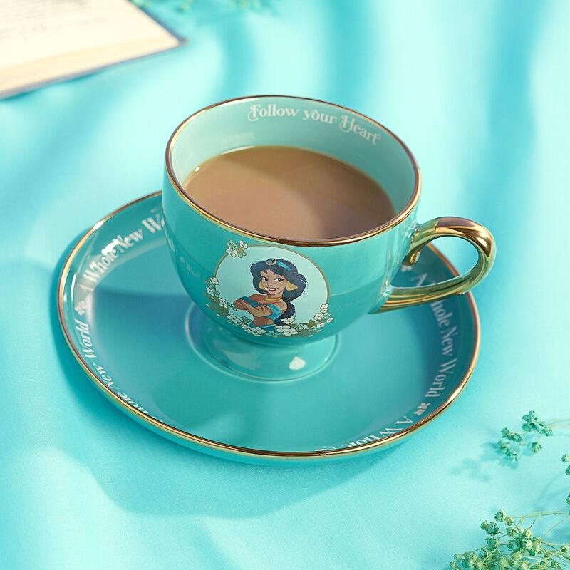 Estilo de palacio para cada pausa: el juego de taza y platillo de Jasmine luce un turquesa profundo con ribetes dorados, un retrato encantador de la princesa entre flores y el mensaje “Follow your Heart” (Sigue tu corazón) impreso con delicadeza en el interior; la taza se asienta con comodidad sobre el platillo para una presentación impecable y un agarre seguro, y llega en caja coleccionable lista para regalar. Su acabado elegante realza cualquier mesa y convierte cada té o infusión en un instante especial, ideal para quienes valoran piezas con diseño cuidado y calidad duradera. Una taza Jasmine Disney pensada para usar a diario o conservar en vitrina, perfecta para completar tu colección Princesas Disney con merchandising Disney oficial que aporta encanto auténtico al hogar.