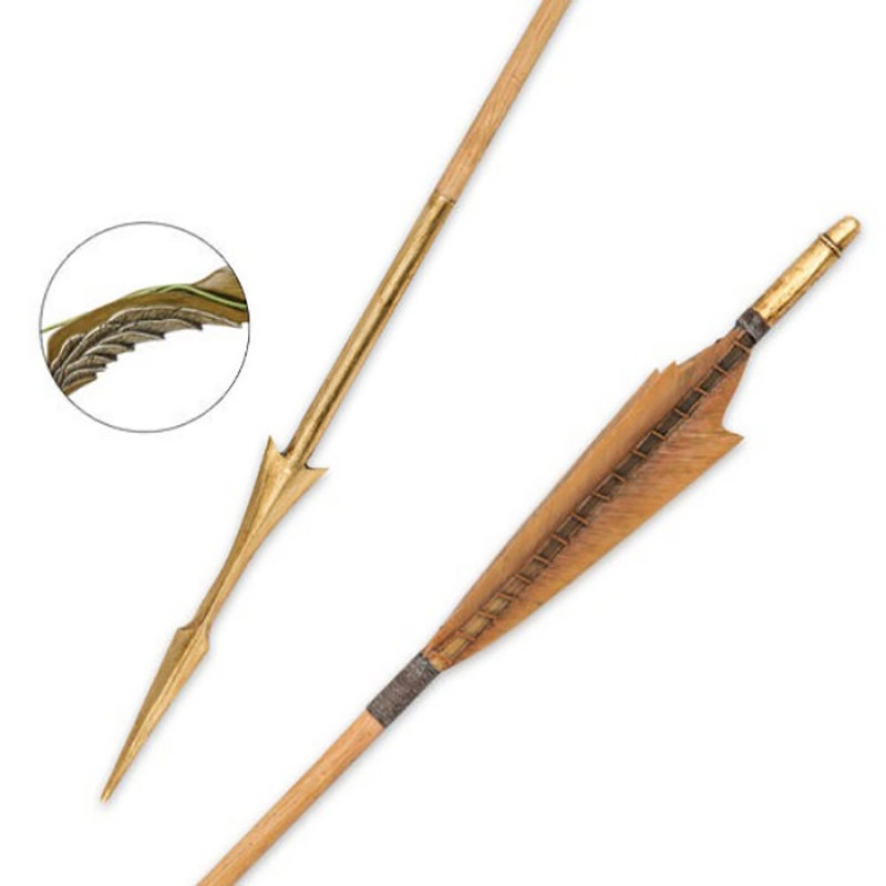 Réplica oficial del Arco con Flecha de Legolas en la trilogía de películas de "El Hobbit" de Tolkien. Realizados en poliresina reforzada con acero basándose en los modelos utilizados para la saga, el modelo está finalizado y pintado a mano dando un toque de realismo a esta pieza de coleccionista. Incluye soporte de pared y certificado de autenticidad. El arco y la flecha están realizados a escala 1/1. Producto Oficial The Hobbit Replica 1/1 Short Bow of Legolas Greenleaf realizado por la firma United Cutlery. Este producto está destinado exclusivamente a la decoración y no puede usarse como un arma.