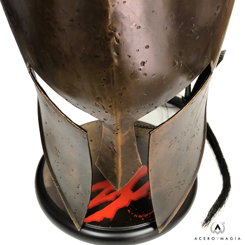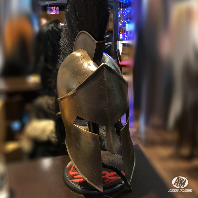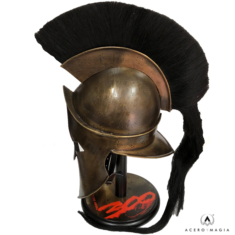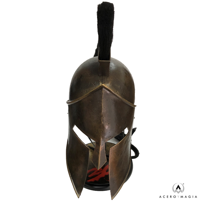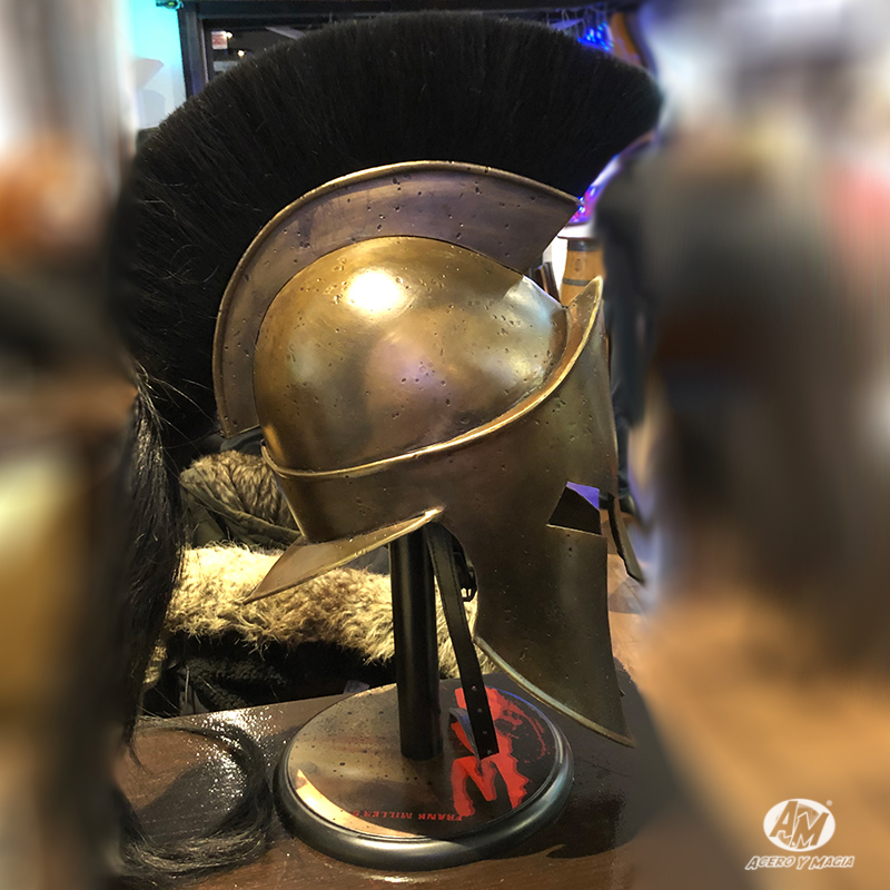 ¡Vive la emoción de la Batalla de las Termópilas con nuestra réplica del Casco del Rey Leónidas, basado en la película de 300! Este espléndido casco está hecho de acero resistente y bañado en latón envejecido para darle un aspecto auténtico y antiguo. Además, está forrado en suave cuero para un mayor confort y cuenta con un forro ajustable para un ajuste perfecto. La genuina cresta de pelo de caballo añade un toque extra de elegancia. Con una altura aproximada de 48 cm., este casco viene con un expositor de mesa para mostrarlo con orgullo en tu hogar.