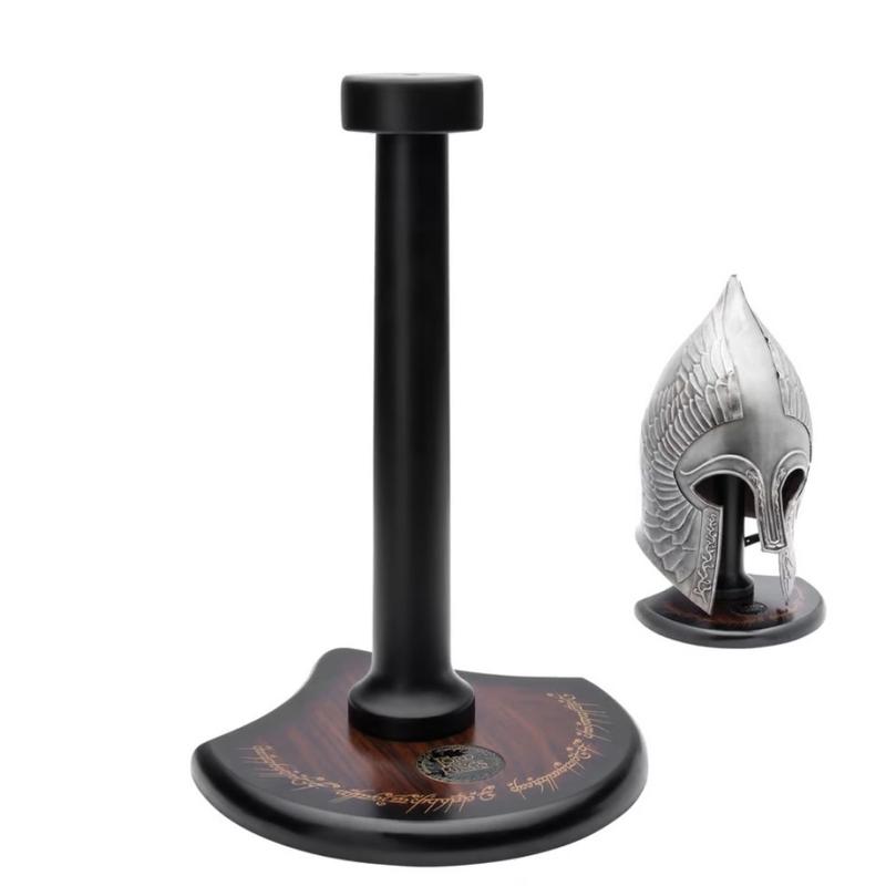 ¡Exhibe tus réplicas de cascos de El Señor de los Anillos con orgullo con el soporte de exhibición de cascos oficial de United Cutlery! Este soporte de reemplazo tiene una construcción de madera de primera calidad, con escritura élfica en oro que añade un toque de elegancia a la pieza.