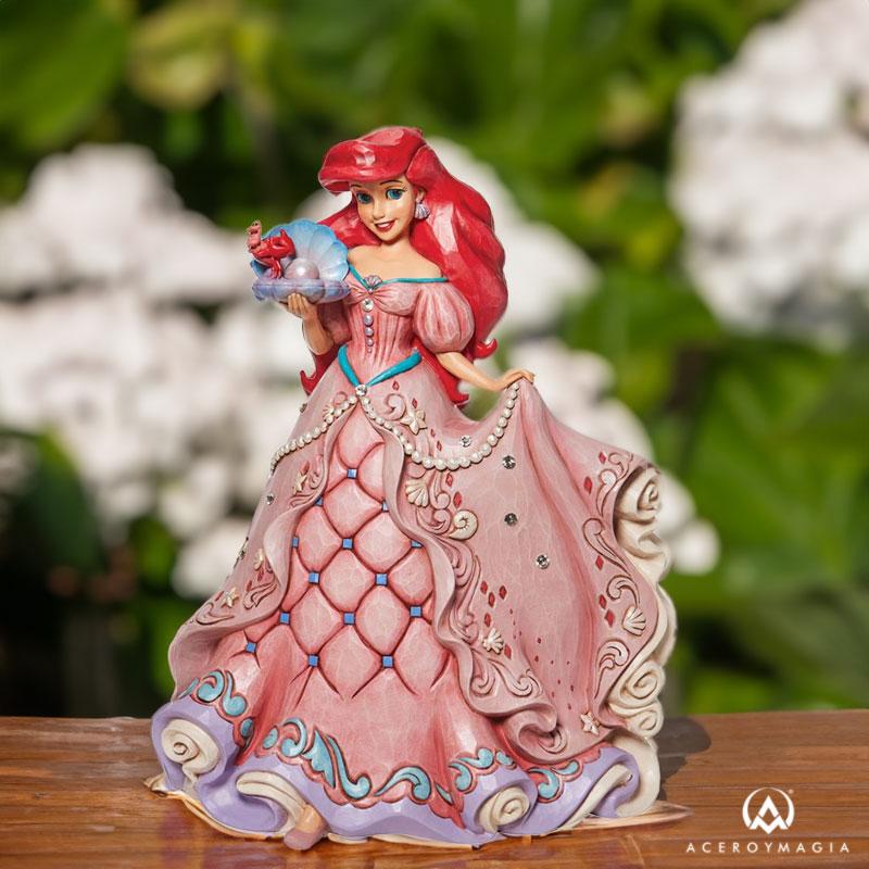 La historia de Ariel, la sirenita, cobra vida en esta figura donde se mezclan los elementos mágicos y los sueños cumplidos. Con la ayuda de una misteriosa bruja marina, Ariel ha obtenido piernas para caminar por la tierra y vivir su anhelo más profundo. Esta figura es el segundo capítulo en la serie Enchanted Princess de Jim Shore, y captura la esencia de Ariel con su hermoso vestido adornado con conchas y joyas, mientras sostiene una ostra con una perla preciosa.