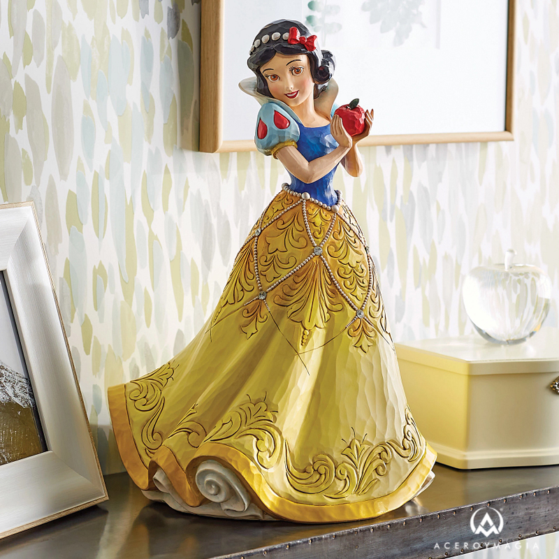 Descubre la elegancia y el encanto de Blancanieves con la Figura Deluxe. Esta exquisita pieza, elaborada en resina, alcanza una altura de aproximadamente 38 cm. Blancanieves resplandece en esta impresionante creación de Jim Shore. Con incrustaciones de joyas y cristales de Swarovski, esta princesa luce un vestido deslumbrante y una dulce sonrisa. Sujeta la famosa manzana con un delicado agarre mientras el veneno del interior brilla con pintura metálica. Un regalo perfecto para los admiradores de las princesas Disney y las figuras de Jim Shore.