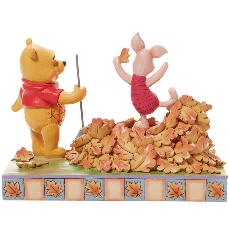Disfruta de la dulzura del otoño con esta encantadora figura de los personajes clásicos de *Winnie the Pooh*. Inspirada en los entrañables momentos de la serie de Disney y diseñada por el renombrado artista Jim Shore, esta pieza captura la calidez y alegría de la estación. Con una altura aproximada de 14 cm, la figura está meticulosamente elaborada en poliresina y pintada a mano, fusionando la magia de las creaciones de Walt Disney con el distintivo estilo Heartwood Creek de Jim Shore. En esta escena detallada, Winnie the Pooh rastrilla con esmero una montañita de hojas mientras Piglet, lleno de emoción, se prepara para saltar sobre ellas. Una obra que no solo destaca por su belleza artesanal, sino también por evocar los momentos más tiernos y nostálgicos de estos personajes queridos.