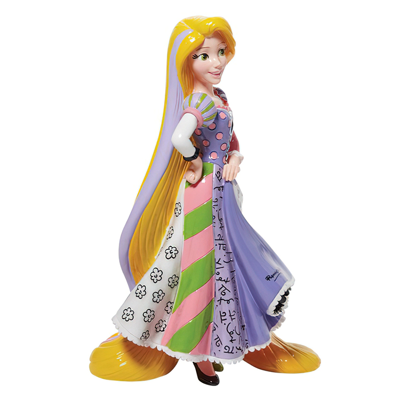 Preciosa figura de Rapunzel realizada por el pintor y escultor Romero Britto para Disney. Esta preciosa figura con una altura aproximada de 19 cm. Una preciosa pieza de coleccionista donde se han mezclado la magia de las figuras de Walt Disney con los elementos del cubismo estereotipados y el arte pop de Britto. Esta figura de Bestia está elaborada en poliresina y pintada a mano con acabados brillantes. Producto Oficial Rapunzel Figurine realizada por el artista Romero Britto. Cada pieza está pintada a mano y se esperan ligeras variaciones de color que hacen que cada pieza sea única.