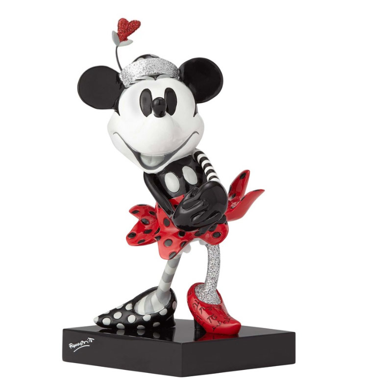 Preciosa figura de Minnie Mouse de Walt Disney realizada por el pintor y escultor Romero Britto, titulada Steamboat Minnie Mouse. Esta preciosa figura tiene unas dimensiones aproximadas de 18 x 8 x 10,5 cm., recuerda una de las escenas más famosas del corto de animación de 1928. Una preciosa pieza de coleccionista donde se han mezclado la magia de las figuras de Walt Disney con los elementos del cubismo estereotipados y el arte pop de Britto. Esta figura de Mickey Mouse está elaborada en poliresina y pintada a mano con acabados brillantes. Producto Oficial Steamboat Minnie Mouse Figurine Disney.