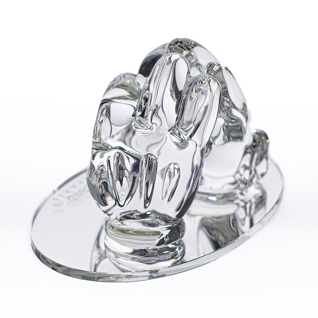 Celebra el amor de una manera única con la cautivadora pieza "Corazón Mickey & Minnie". Con una altura de 8 cm y una longitud de 10 cm, esta hermosa escultura de vidrio captura el momento mágico en el que las manos de Mickey y Minnie se unen para formar la figura de un corazón. La base, con un diámetro de 15 cm, le da a esta obra de arte un toque elegante y estable.