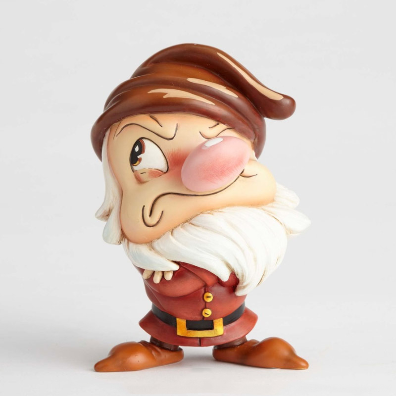 Antipática figura de Gruñón basada en el clásico Blancanieves y los siete enanitos de (1937). En esta impresionante figura se ha puesto un cuidado especial en la recreación de los más finos detalles bajo el diseño de Miss Mindy. La figura está realizada en poliresina y tiene unas medidas aproximadas de 12 x 7,5 x 8,5 cm. Producto Oficial de Disney Grumpy perteneciente a The World of Miss Mindy.