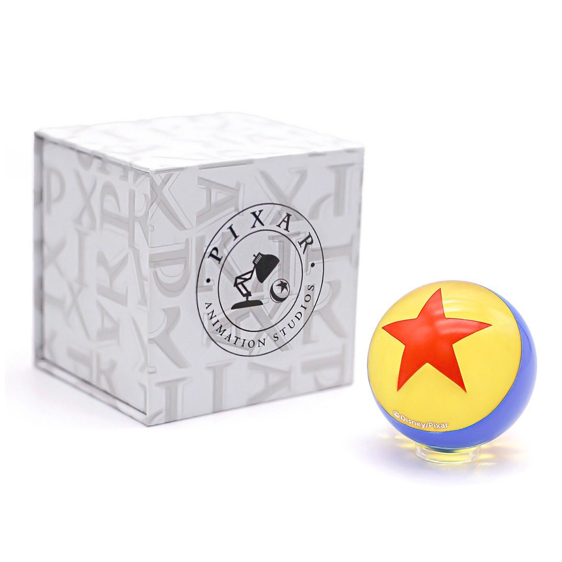 Dentro de esta caja temática de Pixar encontrarás la pelota de Pixar, junto con su soporte de vidrio. Con un diámetro de 5,5 cm, esta pieza está disponible en diferentes colores: