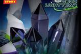 La base, inspirada en un terreno alienígena, presenta texturas rocosas y cristales negros translúcidos, aportando una atmósfera cósmica que enmarca perfectamente la postura decidida de Buzz. Limitada a 3.000 unidades en todo el mundo, cada estatua incluye una placa metálica numerada individualmente, consolidándola como una pieza exclusiva y esencial para coleccionistas serios del universo Pixar.