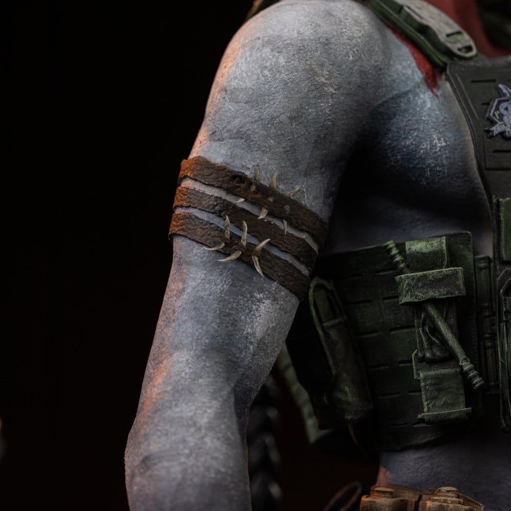 Nacida del corazón del universo Avatar, esta estatua Art Scale 1/10 de Miles Quaritch impone desde el primer vistazo una presencia dominante, cargada de tensión narrativa y fuerza visual. Cada centímetro de la figura transmite autoridad militar y determinación absoluta, con una postura firme que refleja la evolución del personaje en la saga Fire and Ash. La escultura destaca por un nivel de detalle sobresaliente, desde el equipo táctico meticulosamente recreado hasta las texturas de la piel y el armamento, logrando un realismo que eleva esta pieza a la categoría de objeto de colección premium. Fabricada principalmente en polystone e integrada con elementos en resina, PVC y metal, la estatua cuenta con un acabado pintado a mano que realza volúmenes, contrastes y matices, aportando profundidad y autenticidad a la escena. Con unas dimensiones aproximadas de 36 cm de alto, 26 cm de ancho y 17,5 cm de fondo, esta figura de Avatar encaja a la perfección tanto en vitrinas especializadas como en espacios destacados del hogar, convirtiéndose en un punto focal que conecta cine, arte y pasión por las grandes producciones cinematográficas. Se trata de una estatua Avatar de alta gama pensada para coleccionistas exigentes que buscan una figura Miles Quaritch con licencia oficial, gran impacto visual y un valor duradero dentro del coleccionismo cinematográfico.