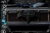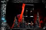 Observemos más de cerca esta estatua de 46 cm de altura. Batman luce su icónico traje azul y gris, meticulosamente esculpido con atención al más mínimo detalle. Desde las arrugas en la tela hasta los signos de desgaste tras años de luchar contra el crimen. Observa cómo se ha aplicado el sombreado con perfección. Ambos brazos descansan sobre los apoyabrazos del trono, y su capa cae hasta el suelo, cubriendo parcialmente su pierna izquierda. Estalagmitas rodean su trono, evocando la atmósfera de la Batcueva. Esta versión económica es ideal para los fans que buscan una pieza más compacta y elegante diseñada por Gabriele Dell'Otto.