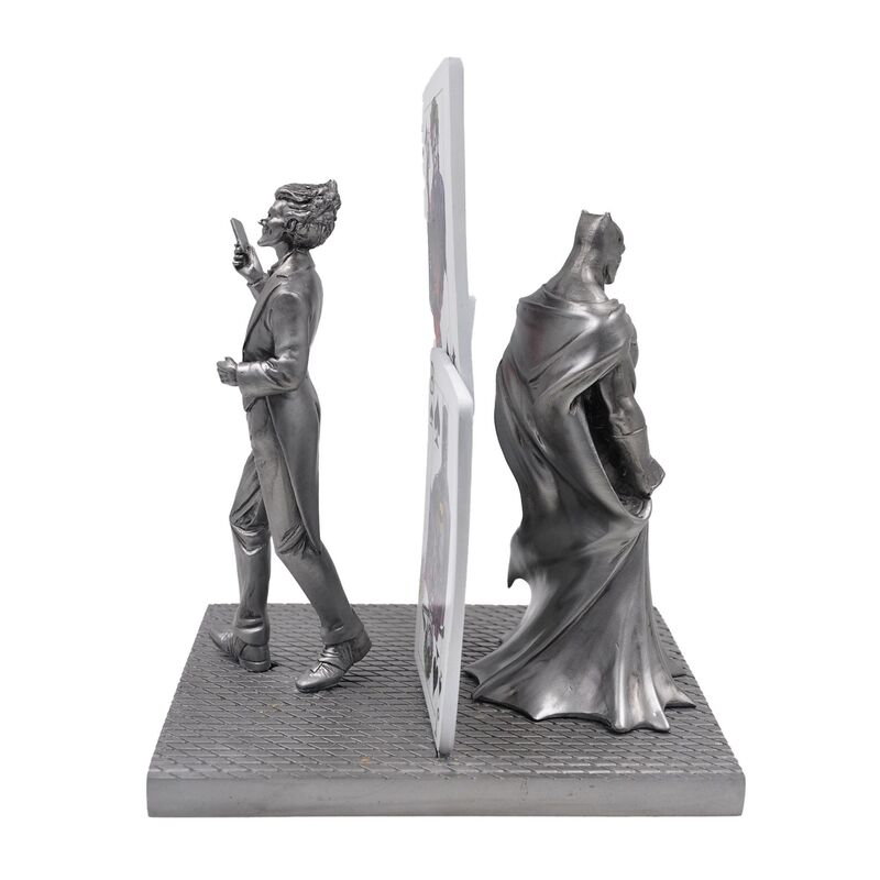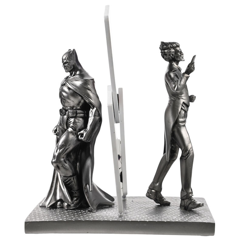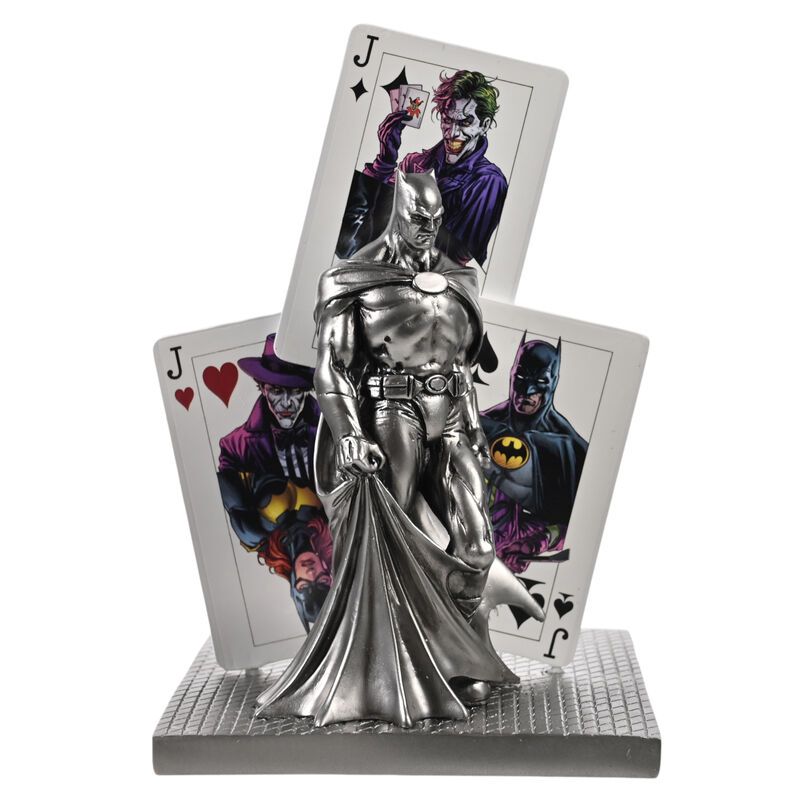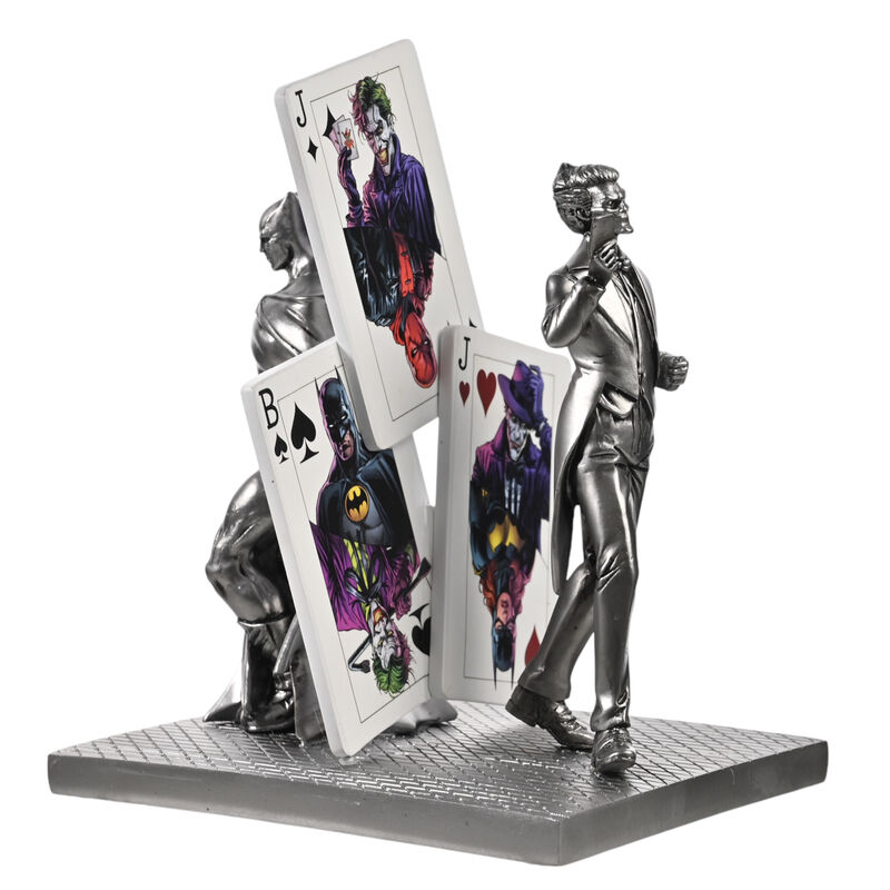 Duelo eterno en tu estantería: esta figura Batman & Joker Stack of Cards captura a los dos iconos de DC Comics en poses tensas frente a una baraja que simboliza el equilibrio entre caos y orden, con un acabado efecto metal que realza cada pliegue de la capa y cada gesto del Príncipe Payaso. Producto con licencia oficial Warner Bros, es una pieza sólida para exposición que aporta presencia cinematográfica a escritorios, vitrinas y zonas de lectura; sus medidas la hacen perfecta para destacar sin saturar el espacio —alto 20 cm, ancho 17 cm, fondo 1,5 cm— y su base texturizada ofrece estabilidad para que luzca impecable día tras día. Un acierto para coleccionistas que buscan merchandising DC oficial con carácter, ideal como regalo Batman original o para completar una colección temática con una figura Batman Joker diseñada para contar historias a simple vista.