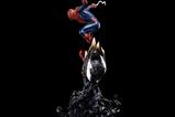 Flexionando sus poderosos músculos, el legendario y amigable superhéroe del vecindario usa el máximo de su fuerza arácnida y destreza para esquivar y mantenerse alejado del ataque de uno de sus enemigos más aterradores y poderosos, con la viscosa biomasa alienígena de alquitrán que forma su rival. debajo de sus pies, con tentáculos y zarcillos que toman la forma de dos troncos con bocas, colmillos y largas lenguas tratando de capturarlo como dos plantas carnívoras en busca de su presa, el intrépido superhéroe trepamuros se apoya resuelto en sus telarañas enfrentándose a la poderosa y letal criatura . Inspirándose en su atrevido look en los cómics de la década de 1990, Iron Studios presenta la estatua "Spider-Man Deluxe - Spider-Man vs Villains - Art Scale 1/10", que presenta el siempre épico enfrentamiento entre el increíble Spider-Man y el Alien Symbiote Venom, en el que se puede unir al set la estatua "Venom Deluxe - Spider-Man vs Villains - Art Scale 1/10", con el siniestro villano en otra versión exclusiva de Iron Studios.