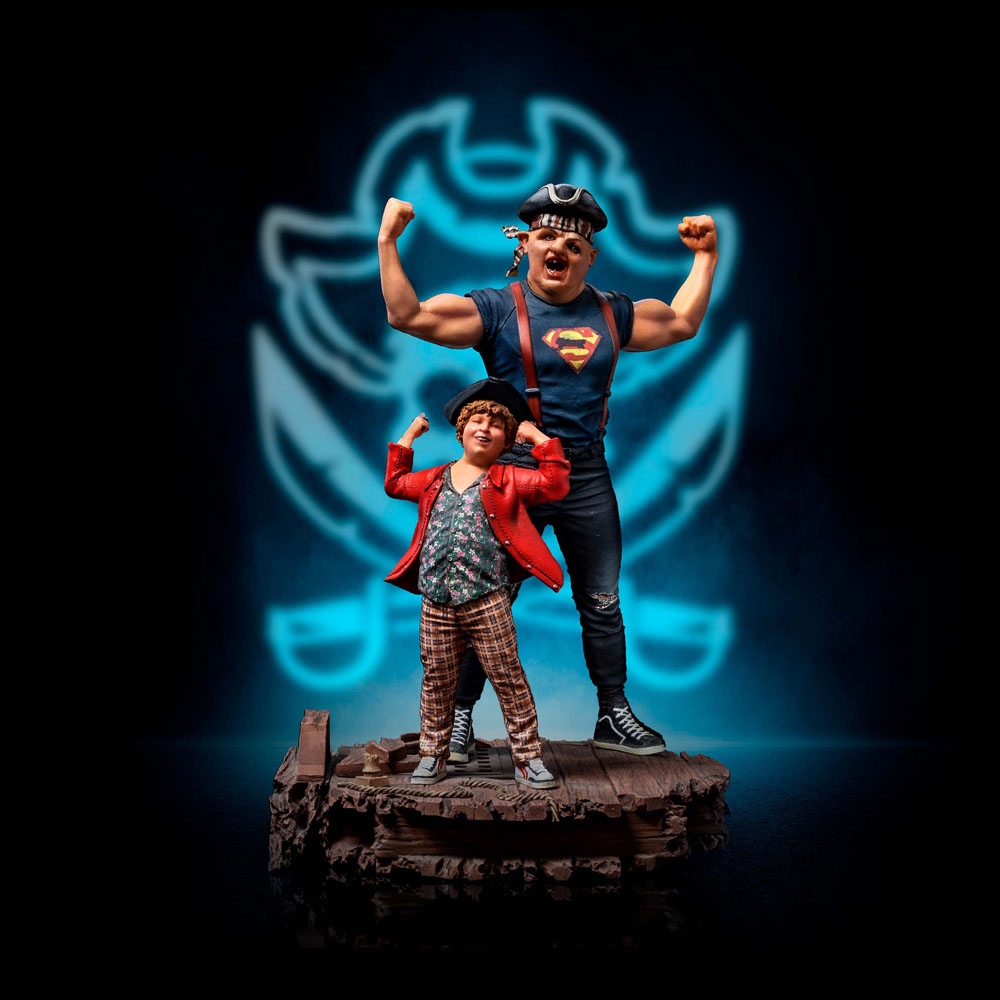 ¡Acompaña a Sloth y Chunk en su épica aventura con la estatua "The Goonies Art Scale Statue 1/10 Sloth y Chunk 23 cm"! Presentados por Iron Studios, esta impresionante réplica de 1/10 escala captura la camaradería y la fuerza de estos dos héroes del clásico filme de los 80's. Con Sloth mostrando su musculatura y la letra "S" en su pecho, y Chunk sosteniendo un cuchillo curvo y sonriendo con su cabello rizado, estos dos amigos levantan sus brazos en un gesto de triunfo. ¡No te pierdas esta oportunidad única de tener a Sloth y Chunk en tu colección! ¡Medidas: 23,5 x 16,5 x 15,5 cm! Estatua de poliresina a escala 1/10 de "The Goonies", dimensiones aprox. 23,5 x 16,5 x 15,5 cm. Licencia oficial. En el estado de Oregon, en una parte llamada "Goon Docks", un grupo de niños conocidos como Goonies, enfrentan la amenaza de ser separados, cuando miembros de un Club del país en expansión compran la hipoteca de sus casas. Cuando se reúnen para el último fin de semana juntos, en el ático de la casa del líder del grupo Mikey Walsh, encuentran un viejo mapa que puede llevarlos al tesoro del legendario pirata "One-Eyed Willy", que está en algún lugar cercano. Eso los lleva en una búsqueda por el tesoro, para pagar las deudas y preservar sus hogares, una aventura en una serie de cuevas con pasajes ocultos, trampas mortales y la amenaza de una familia de criminales fugitivos de la prisión notorios. Chunk es como su apodo puede sugerir, un joven fuerte.