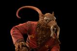 Completamente inconscientes de lo que sucede bajo sus pies en las galerías de las alcantarillas, los habitantes de la ciudad de Nueva York no tienen idea de que una gran rata ninja mutante antropomórfica es la figura paterna y maestra en el arte del Ninjutsu para cuatro hermanos Tortuga que actúan como su protector. Con un raído kimono de arce, la antigua rata de pelaje marrón y largos bigotes grises se balancea en cuclillas sobre una vieja red de tuberías y paredes de ladrillo, sosteniendo en su mano izquierda su inseparable bastón de madera frente a su cuerpo, lista para luchar contra cualquier villano que lo desee. para dañar sus sonidos, eso tendrá que enfrentarse a él primero. Así, Iron Studios presenta su estatua "Master Splinter BDS - TMNT - Art Scale 1/10", el sensei de las icónicas Tortugas Ninja.