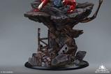La estatua de Iron Spider-Man a escala 1/4 es una representación precisa de la armadura 17A de Avengers: Endgame. Muestra a Parker sujetando el Guantelete del Infinito de Stark, agachado en su icónica armadura roja y azul de Spidey con un borde dorado. Al activar el modo Rojo de Muerte instantánea, sus ojos se iluminan de rojo y cuatro patas mecánicas se extienden desde su espalda hacia la roca espacial irregular. La roca espacial agrega un contraste perfecto a la armadura de alta tecnología, resaltando los detalles intrincados de una de las mejores creaciones de Stark.