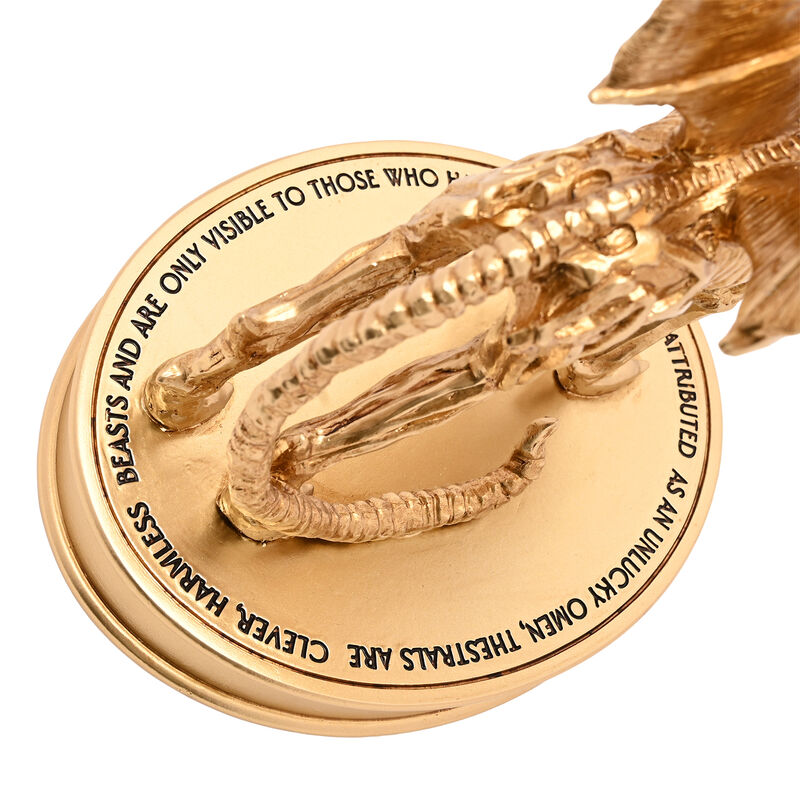 Hay piezas que no solo decoran, también transmiten presencia, misterio y ese universo inconfundible que convirtió a Harry Potter en una saga inolvidable. La figura Harry Potter Thestral de Warner Bros destaca por su estética poderosa y por la fuerza visual de una criatura tan fascinante como enigmática, representada con un acabado dorado que realza cada ala, cada hueso y cada curva de su silueta. Esta figura coleccionable Harry Potter está pensada para lucir en estanterías, vitrinas, escritorios o rincones temáticos, aportando un toque elegante y reconocible desde el primer vistazo. Sus medidas de 23 x 15 x 11 cm ofrecen un tamaño muy equilibrado para exponerla con facilidad, con suficiente presencia para convertirse en una pieza protagonista sin ocupar demasiado espacio. La base con el nombre “The Thestral” refuerza su valor decorativo y coleccionable, convirtiéndola en una excelente elección para regalo o para completar una colección inspirada en criaturas mágicas. Esta figura Thestral Harry Potter resulta especialmente atractiva para quienes valoran los detalles, la ambientación y los objetos con personalidad propia, ya que combina licencia Warner Bros con un diseño pensado para captar la esencia oscura y elegante del personaje. El resultado es una pieza con gran impacto visual, ideal para dar más carácter a cualquier colección de cine y fantasía.