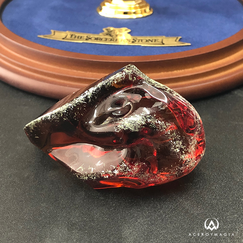 Adéntrate en el mágico mundo de Harry Potter con la réplica oficial de la Piedra Filosofal. Disfruta de esta magnífica réplica de la famosa piedra, conocida en la antigüedad por sus poderes mágicos. Elaborada en vidrio rojo con una longitud aproximada de 15 cm, esta piedra viene acompañada de un precioso expositor.
