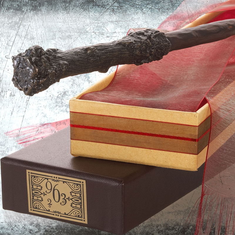 ¡Llévate a casa un pedacito de la magia de Harry Potter con esta increíble réplica de la varita del famoso mago! Realizada con la más alta calidad y atención al detalle, esta varita es una réplica exacta de la que utilizó Harry Potter en la serie de películas. Realizada en resina Polyresin, esta varita es duradera y resistente, y viene presentada en una elegante caja de regalo con una cenefa para decorar. A escala 1:1 y con una longitud de 35 cm., esta varita es el tamaño perfecto para manejarla y sentir la verdadera magia de Harry Potter. ¡No puede faltar en tu colección de varitas Ollivander! Además, esta réplica es un producto oficial de la prestigiosa firma Noble Collection, lo que significa que puedes estar seguro de su calidad y autenticidad.