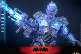 La figura incluye una cabeza recién desarrollada con piel azul helada y texturas realistas, junto con un traje especializado que recrea fielmente el diseño de la película. El traje presenta una malla negra y plateada con piezas de armadura superpuestas, acabadas en tonos metálicos y partes translúcidas e iridiscentes en los brazos, pecho, muslos y pantorrillas, añadiendo un toque futurista y gélido. Además, el diseño con luces LED en la armadura, el casco desmontable y el arma de congelación (con un rayo de hielo adjunto) permite exhibir al personaje de manera dinámica y espectacular.