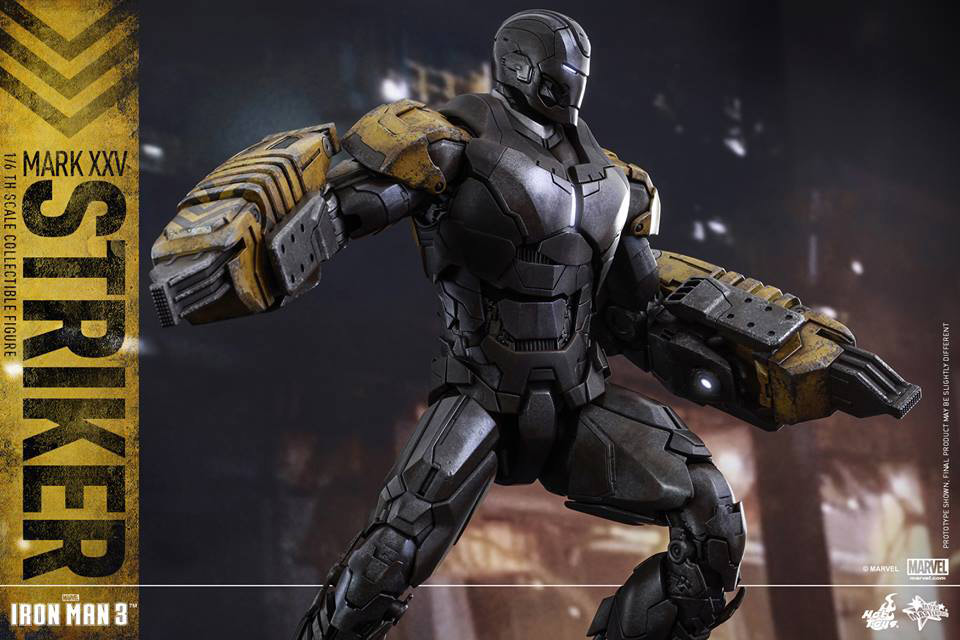 Brutal figura Movie Masterpiece Edición Limitada de Iron Man Mark XXV Striker basada en la película Iron Man 3 interpretado por Robert Downey Jr, figura creada por la firma Hot Toys basándose en los bocetos originales de Marvel para la película, la figura cuenta con más de 36 puntos de articulación que hacen casi posible cualquier posición. Increíbles detalles de pintura realizados por los artistas Yulli y JC Kong. Con todo lujo de detalles como LED’s iluminando los ojos y el RT del pecho y el display de exhibición. La figura tiene una altura aproximada de 30 cm. Producto Oficial Iron Man 3 Movie Masterpiece Action Figure 1/6 Iron Man Mark XXV Striker realizada por la firma Hot Toys.