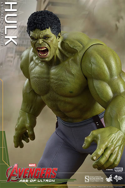 Figura Edición Limitada de Hulk basada en la película “Vengadores; La era de Ultrón” interpretando ambos personajes el actor Mark Ruffalo, la figura ha sido creada por la firma Hot Toys basándose en los bocetos originales de Marvel para la película, la figura de Hulk cuenta con más de 20 puntos de articulación que hacen casi posible cualquier posición y tiene una altura aproximada de 42 cm. Incluye también varios juegos de manos, ropa realizada en tela, …etc. Producto Oficial Avengers Age of Ultron Movie Masterpiece Action Figure 1/6 Hulk realizado por la firma Hot Toys.