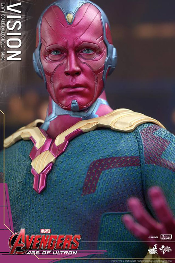 Espectacular figura Edición Limitada de Visión basada en la película “Los Vengadores: La era de Ultrón" interpretado por Paul Bettany, figura creada por la firma Hot Toys basándose en los bocetos originales de Marvel para la película, la figura cuenta con más de 28 puntos de articulación que hacen casi posible cualquier posición. Con todo lujo de detalles y complementos entre los que podemos destacar varios juegos de manos, armas, el display de exhibición con una placa de identificación con el logotipo de la película. La figura tiene una altura aproximada de 31 cm. Producto oficial Avengers Age of Ultron Movie Masterpiece Action Figure 1/6 Vision realizado por Hot Toys.
