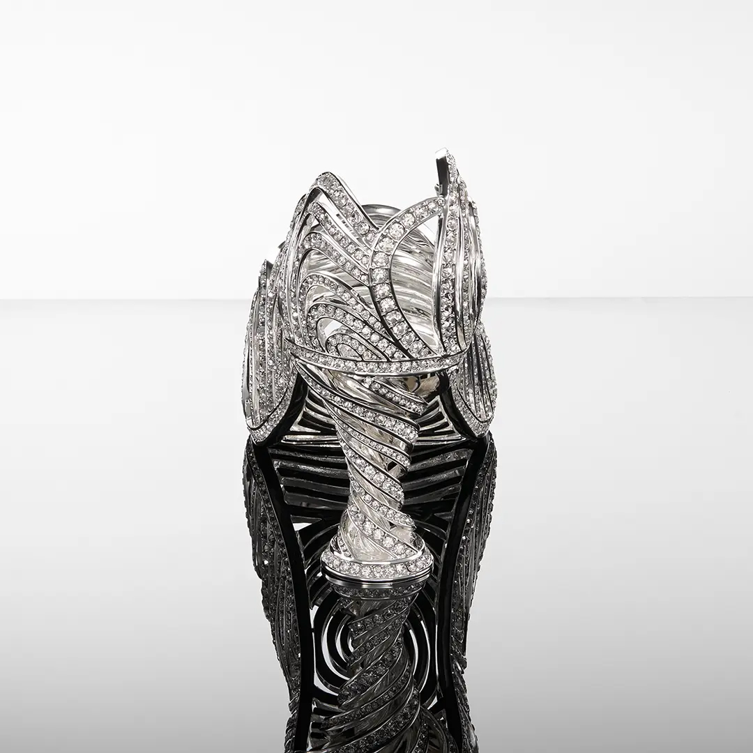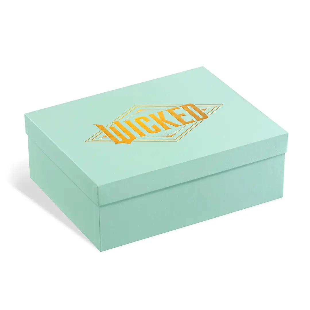 Brillan como un hechizo en pleno escenario: esta réplica auténtica de las Zapatillas de Plata de Nessarose, vista en la película Wicked, está chapada en plata y engastada a mano con más de 2.000 cristales europeos que destellan a cada giro de la luz. Sus arcos delicados, las gemas resplandecientes y el inconfundible tacón en espiral capturan la elegancia del Mundo de Oz con una fidelidad exquisita, pensada para colecciones que buscan piezas con alma. Cada par pertenece a edición limitada y llega en una caja color menta con el logo de Wicked, acompañado de una vitrina acrílica de 30 × 30 × 18 cm con base de madera color menta y plataforma de terciopelo rojo rubí, un guiño directo a la icónica caja de la película. Concebido exclusivamente para exposición, este objeto de colección se entrega listo para lucir en tu estantería o vitrina, con medidas de 7,5 × 11,5 × 20 cm por zapato, y se convierte en la pieza central de cualquier selección de merchandising Wicked de alto nivel, perfecta para quienes valoran el coleccionismo de cine con materiales premium y acabados impecables.