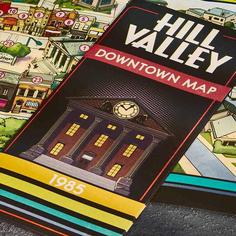 Todos los recuerdos que Marty reunió en sus viajes en el tiempo a 1955, 2015, 1885, e incluso a la realidad paralela de 1985 ahora son tuyos. Y complementa tu colección con la auténtica réplica de la llave del DeLorean, porque "si vas a construir una máquina del tiempo, ¿por qué no hacerlo con estilo?" Este Kit Incluye: Carta introducción de Marty. Matrícula “desgastada” OUTATIME. De 1885 el Sobre del Telégrafo de Hill Valley. Instantánea de la lápida de Doc (con efecto lenticular de desvanecimiento). Mapa de la Mina Delgado (84 cm x 51 cm). Póster de recompensa de Buford Tannen. Mapa de Hill Valley de 1885. De 1955 el Sobre del Instituto Hill Valley. Menú de Lou’s Café. Retrato de la noche del baile de Lorraine y George. Diagrama esquemático del condensador de fluzo. Flyer del “Baile del encantamiento bajo el mar”. Retrato de cartera de Lorraine. Mapa de Hill Valley de 1955. De 1985 la Bolsa del centro comercial “Twin pines”. Foto de familia McFly (con efecto lenticular de desvanecimiento). Ficha roja de “Biff Tannen’s Pleasure Paradise Casino”. Chapa orlada “Save the Clock Tower”. Carta de Marty a Doc “Do not open until 1985”. Parte de retraso de Marty. Marcapáginas “A Match made in Space”. Chapa “Re-Elect Mayor Goldie Wilson”. Chapa “Art in Revolution”. Flyer “Save the Clock Tower”. Tarjeta de visita “Dr E. Brown Enterprises”. Mapa de Hill Valley de 1985. Y de 2015 la Bolsa “Blast from the Past”. Posavasos “Cafe 80’s” (con efecto lenticular de animación). Hoja de magazine con publicidad de Hoverboard a doble cara.. Recibo de “Blast from the Past”. Mantel “Cafe 80’s”. Fax de CUSCO “You’re fired”. Pegatina “Mr. Fusion” y el Mapa 3D de Hill Valley de 2015 (con efecto lenticular y efecto de profundidad 3D)