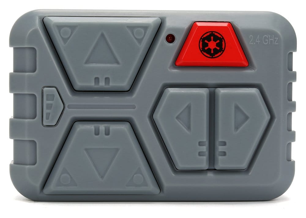 El universo de Star Wars entra en tu colección con un despliegue de acción real gracias al AT-RT teledirigido The Mandalorian & Grogu 1/12, un walker del Remanente Imperial diseñado para moverse de verdad y lucir como una pieza de exhibición con personalidad. Con 33 cm de altura, este vehículo R/C no se limita a rodar: camina, corre y gira con un paso dinámico motorizado que transmite la sensación de máquina pesada, mientras los efectos elevan la escena con sonidos de cañón láser, clips de audio inspirados en la saga y luces LED que refuerzan el ambiente cinematográfico. El toque definitivo lo pone la figura integrada de The Mandalorian sosteniendo a Grogu en formato de 15 cm, perfecta para que el conjunto funcione tanto como juguete de control remoto como elemento decorativo en estantería, escritorio o vitrina temática. Fabricado por Jada Toys, este AT-RT combina presencia, detalle y diversión inmediata, ideal para recrear persecuciones, patrullas o simplemente dar vida a tu flota con una pieza que se mueve y suena como debe. Funciona con 4 pilas AA y 2 pilas AAA, listas para que el walker esté operativo en cuanto llegue a tu base.