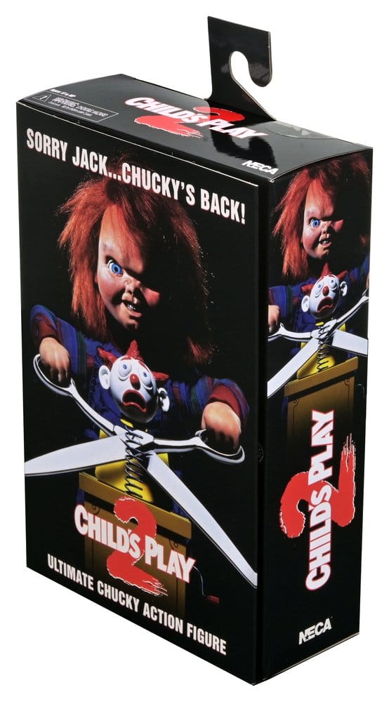 El valor de esta figura original de Child’s Play 2 está en la cantidad de opciones que ofrece para coleccionar y mostrar. Incluye cinco cabezas intercambiables, varias manos, antebrazo alternativo y accesorios reconocibles como cuchillo, regla, bomba de aire, pala, caja sorpresa y tijeras, lo que permite recrear escenas o elegir una pose más limpia para decoración. La caja tipo ventana con solapa frontal también suma presencia para quienes prefieren conservar el embalaje visible.