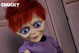 Del universo más inquietante del cine de terror llega esta perturbadora figura con sonido de Glen, el hijo de Chucky, basada en La semilla de Chucky. Con una altura aproximada de 38 cm, esta figura cuenta con 11 puntos de articulación y destaca por sus espeluznantes ojos de cristal que parecen observarlo todo. Luce una camiseta morada desgastada, pantalones cortos negros, deportivas y medias a cuadros, replicando fielmente el aspecto visto en pantalla. Además, incorpora un botón oculto en la espalda que activa frases icónicas de la película, dando vida a este siniestro personaje con una fidelidad escalofriante.